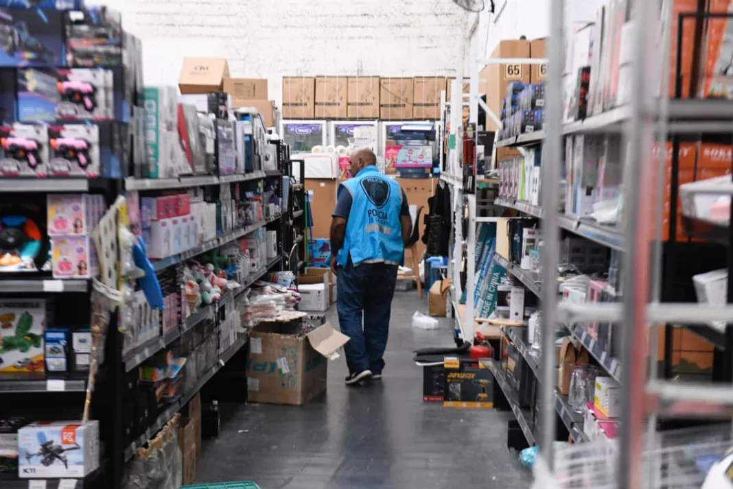 Durante los allanamientos realizados por la División Organizaciones Criminales de la Policía de la Ciudad se incautó variedad de mercadería de origen extranjero como, por ejemplo, artículos de electrónica, regalería, bazar, cuidado personal, perfumes y vestimenta.