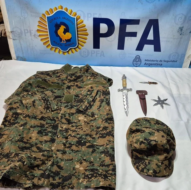 Durante el procedimiento se incautaron dos dagas de uso militar; uniformes apócrifos de la Policía Federal Argentina, de la Policía Bonaerense y de la Policía de Santa Fe; una insignia del Ejército Argentino; tres chapas identificatorias con el nombre del implicado; otra con la leyenda “Campaña del servicio en Irak”; y una restante perteneciente a una comunidad de una Academia de Tiro. Asimismo, se decomisaron chalecos tácticos, gorras militares, dos teléfonos celulares, dos pendrives y demás documentación de interés para la pesquisa.