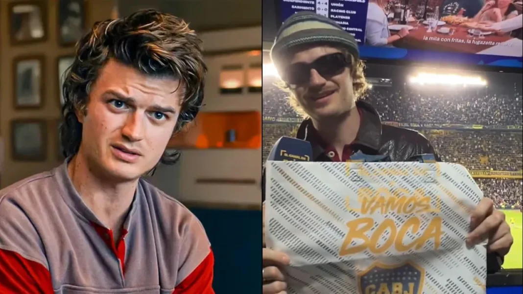 El actor que interpreta a Steve Harrington en la exitosa serie de Netflix estuvo presente en el partido de Boca Juniors-San Lorenzo.
